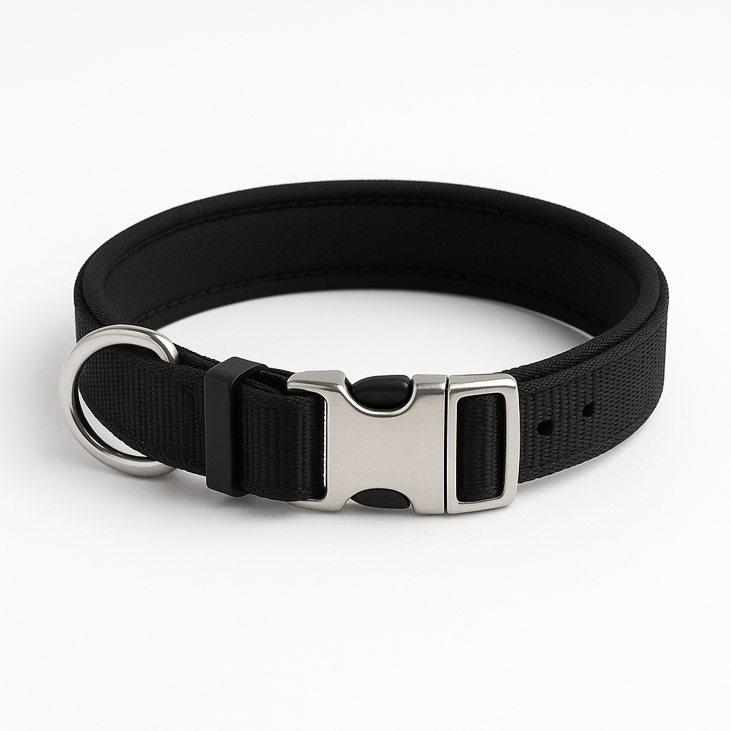 High-quality nylon collar designed for everyday use. The collar is adjustable from 30 cm to 50 cm with a width of 2 cm, making it suitable for most dogs. It features a sturdy stainless steel buckle and reinforced stitching for durability. The inner layer is padded with soft material to reduce friction and provide comfort even during long walks. Lightweight, waterproof, and built to last.